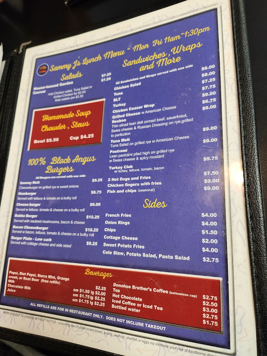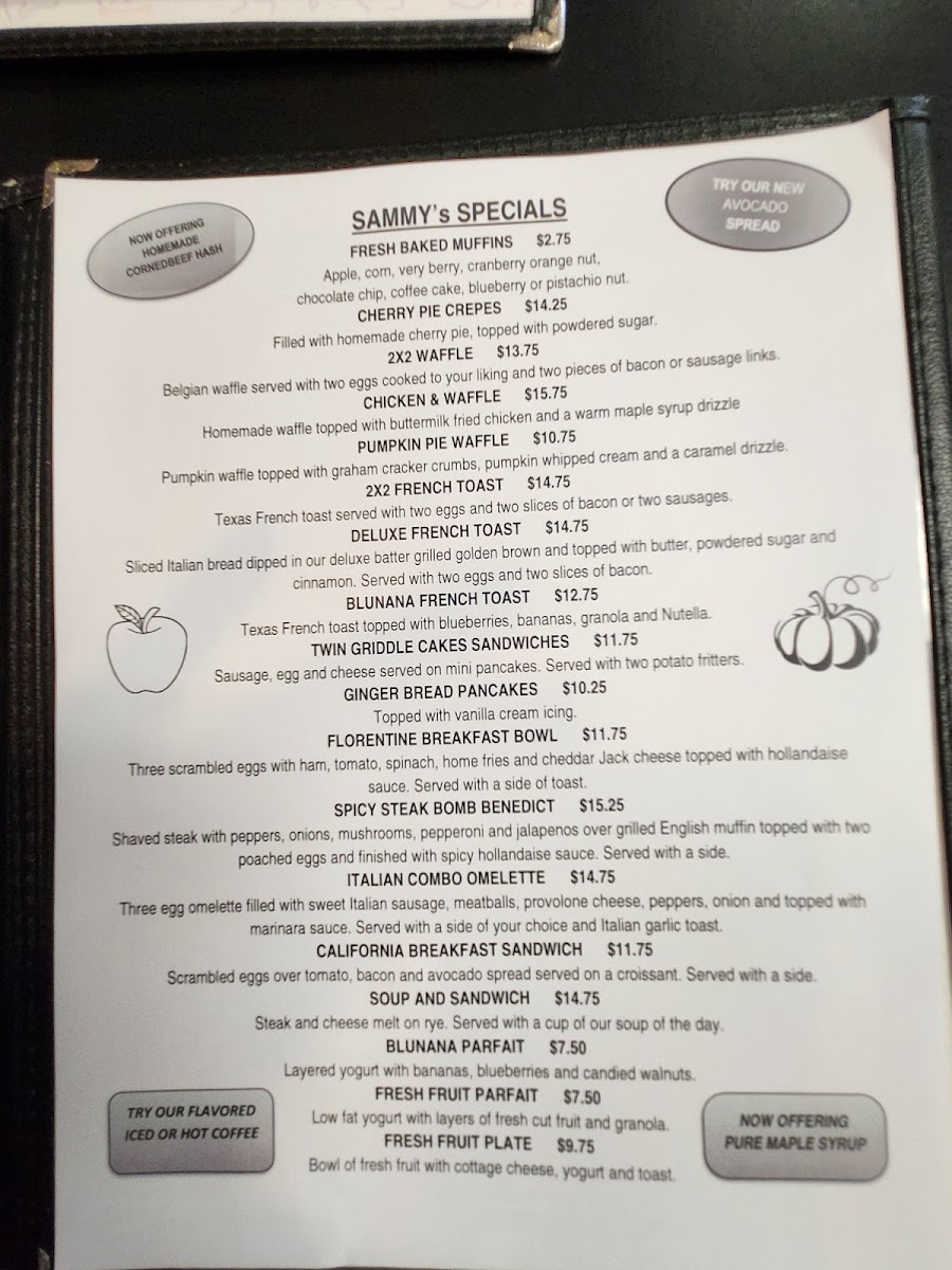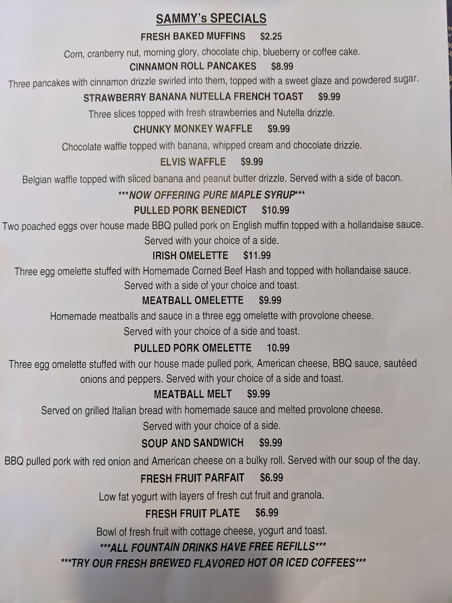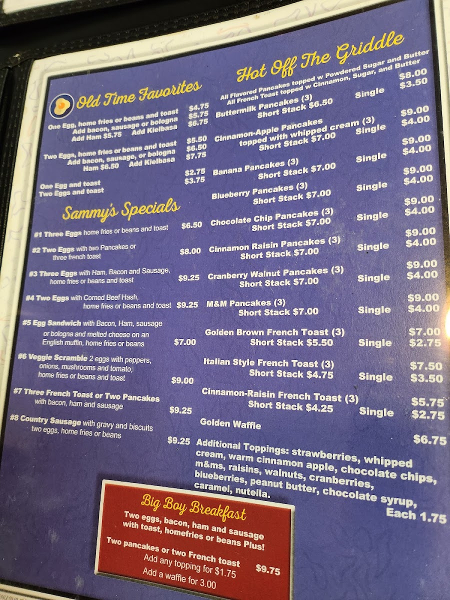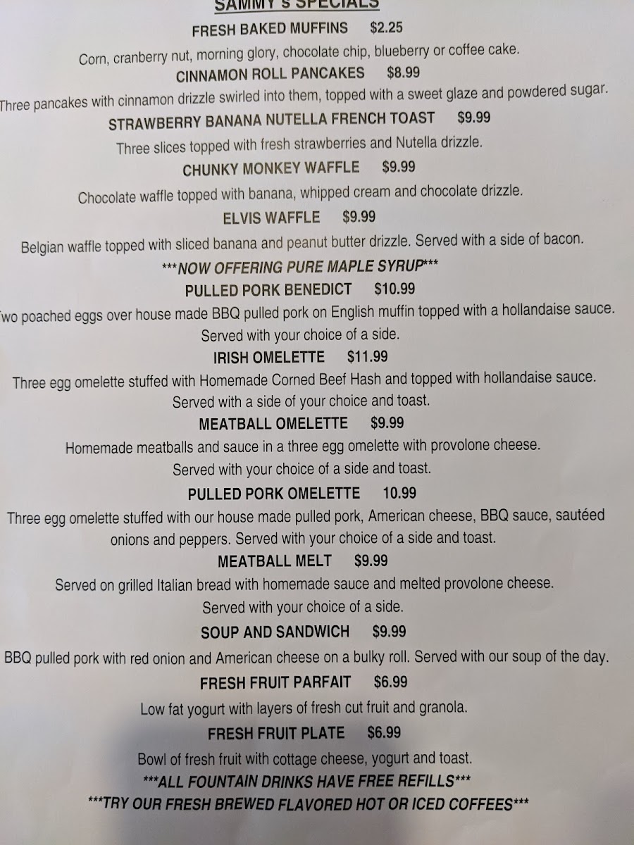 Sammy J’s takes pride in its attentive service and affordable prices. With sides like corned beef hash and homemade biscuits smothered in sausage gravy, there’s something for every palate. Diners can also enjoy comforting extras, such as creamy oatmeal or hearty home fries.